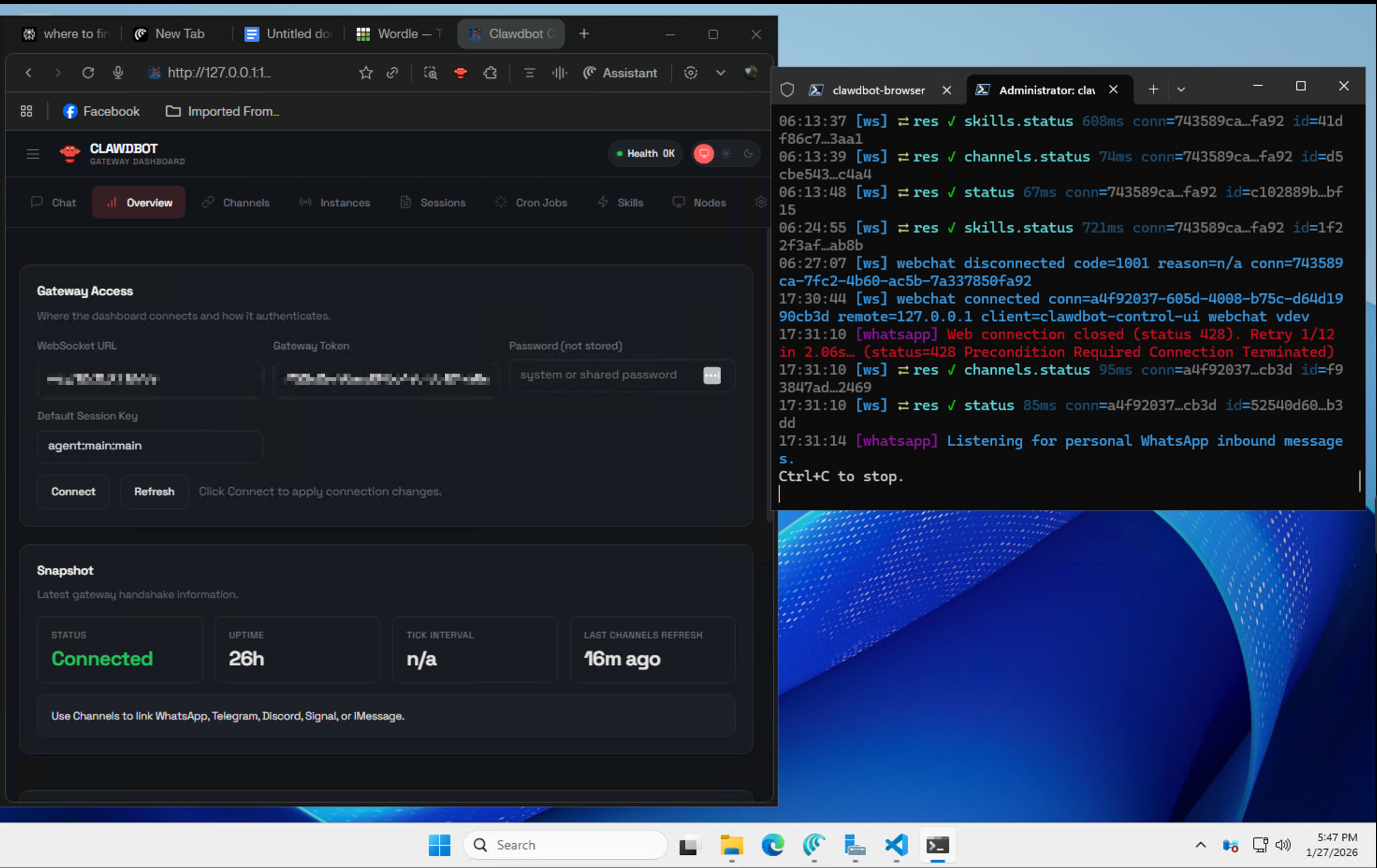 I started on a Windows VM in Google Cloud (thank you, Google, for the credits), hit Homebrew issues, pivoted to Linux, then came back to Windows because the terminal UI and browser integration made the Clawdbot gateway dashboard actually usable.